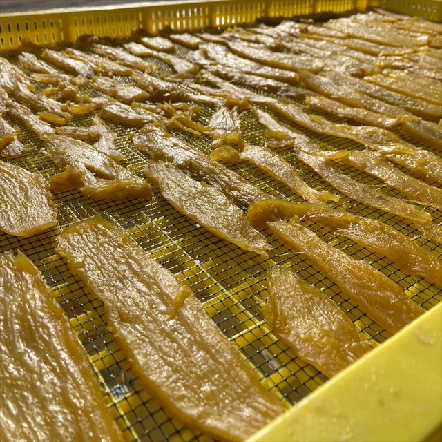 表面に白い粉が付着することがありますが、干し芋に含まれている糖分の結晶ですので安心してお召し上がりください。
